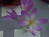 Bloembuis: licht groengeel (CC 2D) soms naar boven toe licht purper. Buitenste bloemblad: purper-violet (CC 80C), 70 × 39 mm, aan de onderste helft een smal wit randje. Binnenste bloemblad: purper-violet (CC 80C), 64 × 30 mm, de onderste 20% wit aan de randen tot de helft. Binnenzijde bloem: purper-violet, de onderste 40% wit, de nerf tot de helft geeft zo een wit stervormig hart. Meeldraad: geelgroen (CC 151A), de voet is bruingroen. Helmhokjes: lichtgeel. Stuifmeel: geel. Stempel: wit met een wat kreukige top. Bijzonderheden: bloem geurt licht en lijkt sterk op 'Dick Trotter', maar is ronder. |