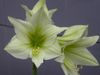 Samenvatting kleur: lichtgroen 145C. 4 bloemen. Schutblad en bracteolen verdroogd. Binnenzijde: binnenste bl.bl. lichtgroen 145C naar rand overgaand in doorschijnend lichtgroen 145C, basaal en over middennerf lichtgroen 145B, naast middennerf op helft bl.bl. donker paarsrood 46A streepje. Buitenste bl.bl. lichtgroen 145C, naar rand toe overgaand in doorschijnend lichtgroen 145C, basaal en over middennerf lichtgroen 145B. Helmdraden 2/3 basaal lichtgroen 145A, 1/3 distaal lichtgroen 145C. Stuifmeel geel 8A. Stijl 2/3 basaal lichtgroen 145A, 1/3 distaal lichtgroen 145C. Stempel lichtgroen 145C. Buitenzijde: buitenste bl.bl. lichtgroen 145C, naar rand overgaand in doorschijnend lichtgroen 145C, over middennerf lichtgroen 145A, naast middennerf smal streepje paarsrood 46A. Binnenste bl.bl. lichtgroen 145C, naar rand overgaand in doorschijnend lichtgroen 145C, over middennerf lichtgroen 145A. Bloemsteeltje bij bloei 6 cm lang, groen. Steel 75 cm lang, groen, basaal wat anthocyaan. Blad 55 cm lang, 4,7 cm breed, groen. Diepte van de bloem ca 12 cm. Alleen de bovenhelft van de bloem heeft rode strepen, nl. de laterale binnenste bl.bl. en het mediane buitenste bl.bl., de laterale buitenste bl.bl. hebben slechts één rode streep aan de bovenkant van de middennerf. |